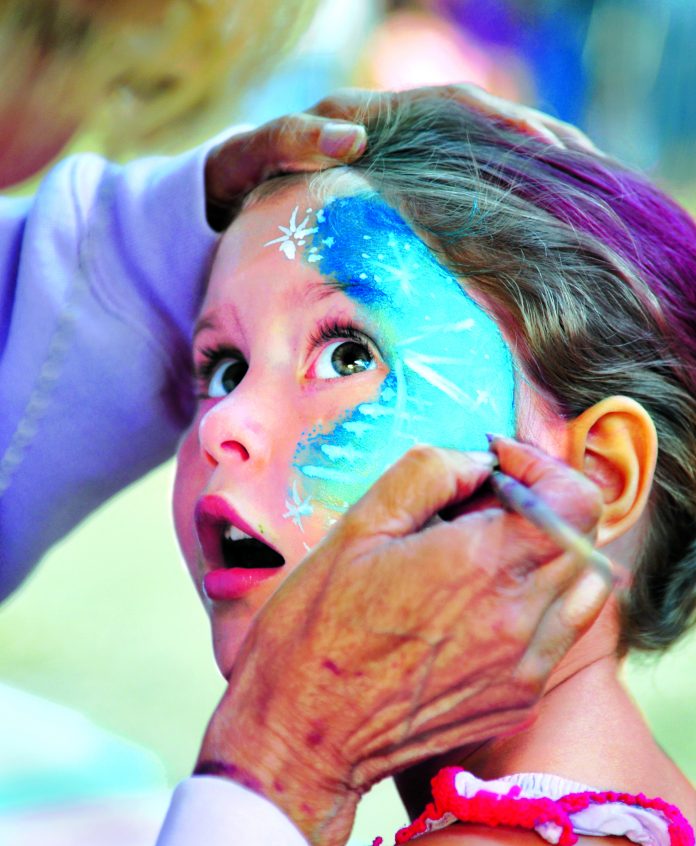 Lily Apodaca, 3 ½, of Los Angeles, has the Queen Elsa character of the film “Frozen,” painted on her cheek at this year’s Fiesta La Ballona. Her mom, Lora was a 2008 CCHS grad, and grandma Judy Groves is an alum from CCHS class of 1976.