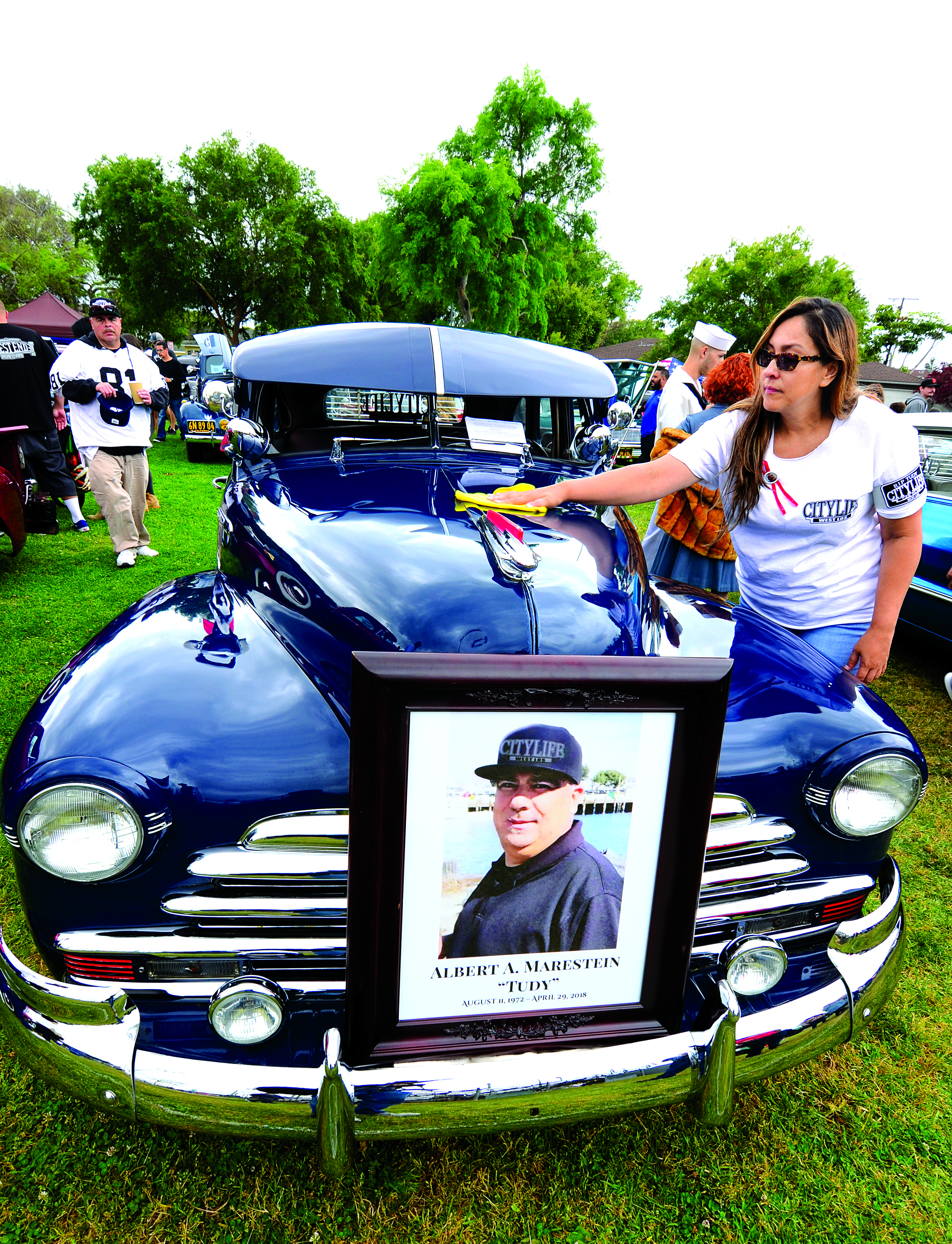 Yvonne Marestein of Culver City polishes her 1947 Chevy Fleetmaster at the Culver City Car Show May 12 at Veterans Park in Culver City. Marestein said the car belonged to her late husband, Albert “Tudy” Marestein, who died on April 29, 2018, at age 45. Tudy and, Yvonne met when they were 15 and were married for 26 years. They have four children: Briana, 21, Marissa, 19, Albert Jr., 9, and Omar, 7. Tudy purchased the Fleetmaster three years ago and restored it. He sold his 1968 Impala to buy this dream car, Yvonne said. This marks the 15th year for the Culver City Car Show, which was presented by the Exchange Club of Culver City and co-sponsored by Petersen Automotive Museum.