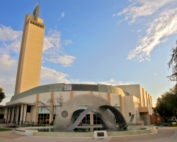 The VMB was renovated in 1980. At that time, a number of changes occurred, including the rounding of the Garden Room (formerly the Tower Restaurant) wall for a mural and installation of glass to view the adjacent patio. Most notable from the outside was the placement of a sculpture on the Overland/Culver corner, a stainless steel work by artist Natalie Krol, “Filmstrip USA” dedicated in 1981. Rooms within have been renamed to honor the city’s sister cities.